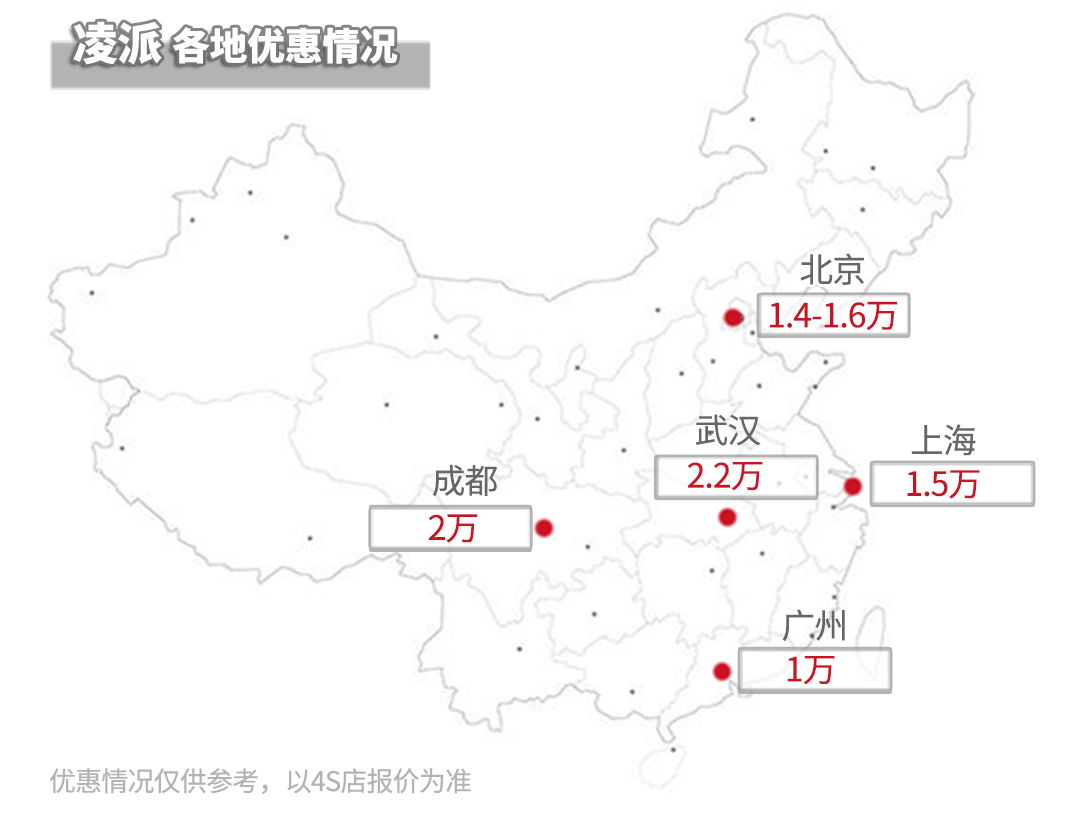 在优惠幅度方面,凌派在广州地区有着1万元的优惠幅度,并且仅需搭配店内上保险的消费项目。