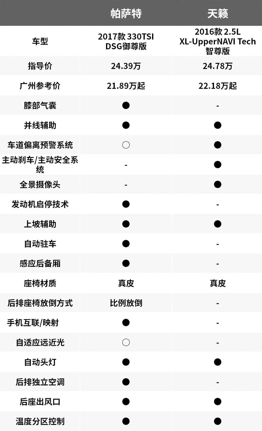 以上两款车的产品力都是非常不错的,其中帕萨特整体风格比较沉稳,同时还具有一定的商务风味,是宜商宜家的选择。天籁则是以舒适性作为主旋律,如果想要舒舒服服地从A点到达B点,那么天籁是一个更好的选择。
