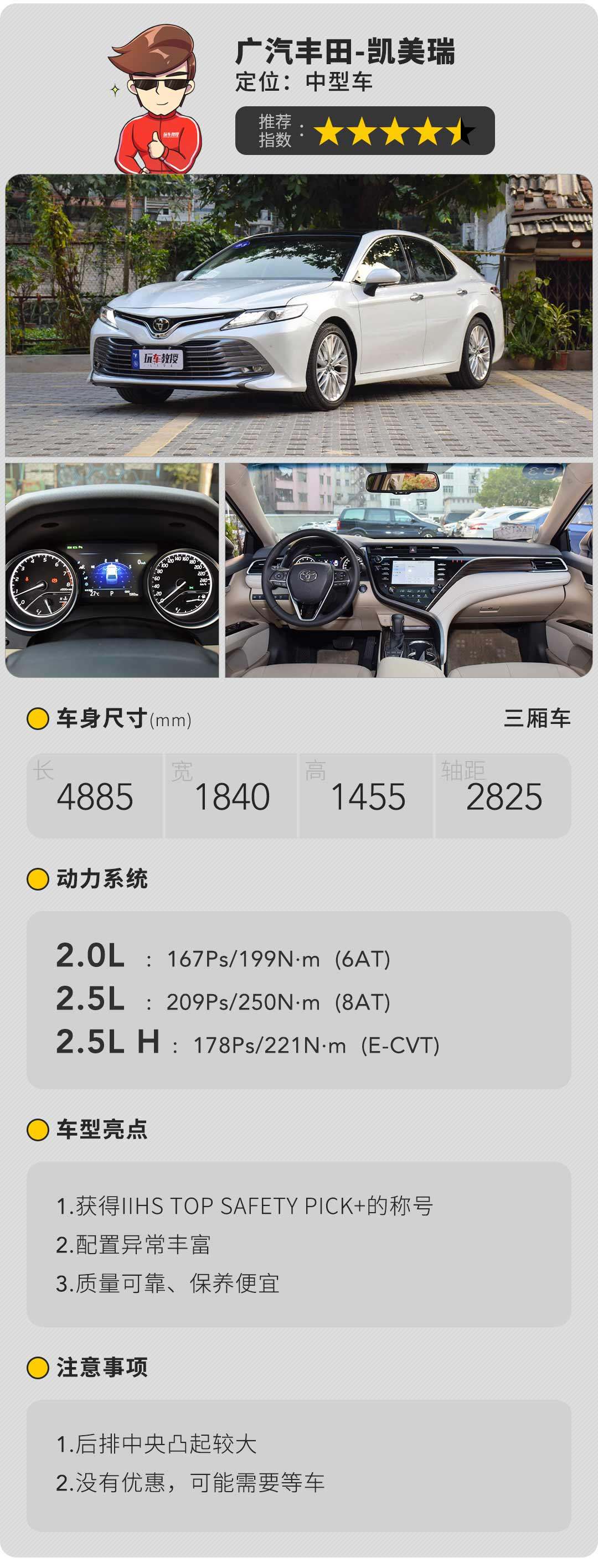 凯美瑞是这四款轿车里最容易被挖掘的。毕竟,制造一款实用轿车是丰田擅长的领域。新一代凯美瑞将外观内饰变得年轻的同时,没有抛弃一辆凯美瑞应有的特性——皮实耐用,保养便宜。