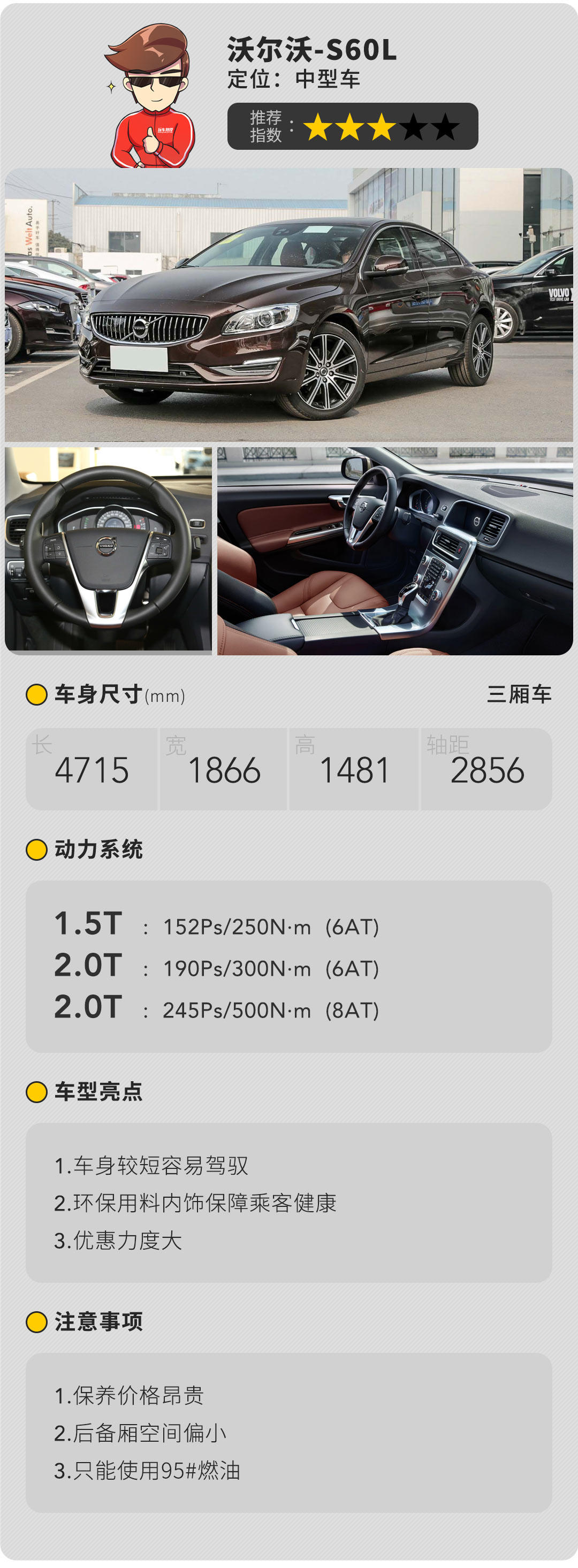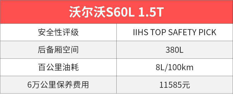沃尔沃S60L将大部分空间都留给了乘客,所以后备厢空间偏小,放了婴儿车后,这空间有点捉襟见肘。沃尔沃S60L的保养费用也是这次导购车型中最贵的,而且只能加95#燃油,所以后期费用贵一点。