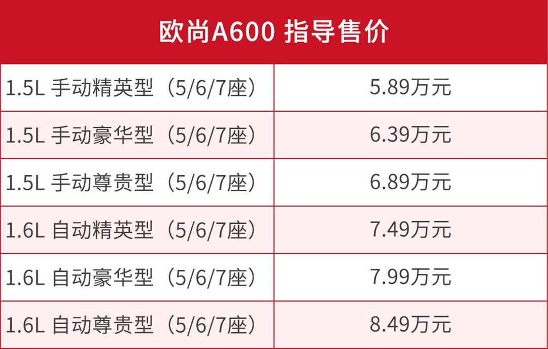 日前,长安欧尚A600正式上市,新车共推出六款车型,售价区间5.89-8.49万元。