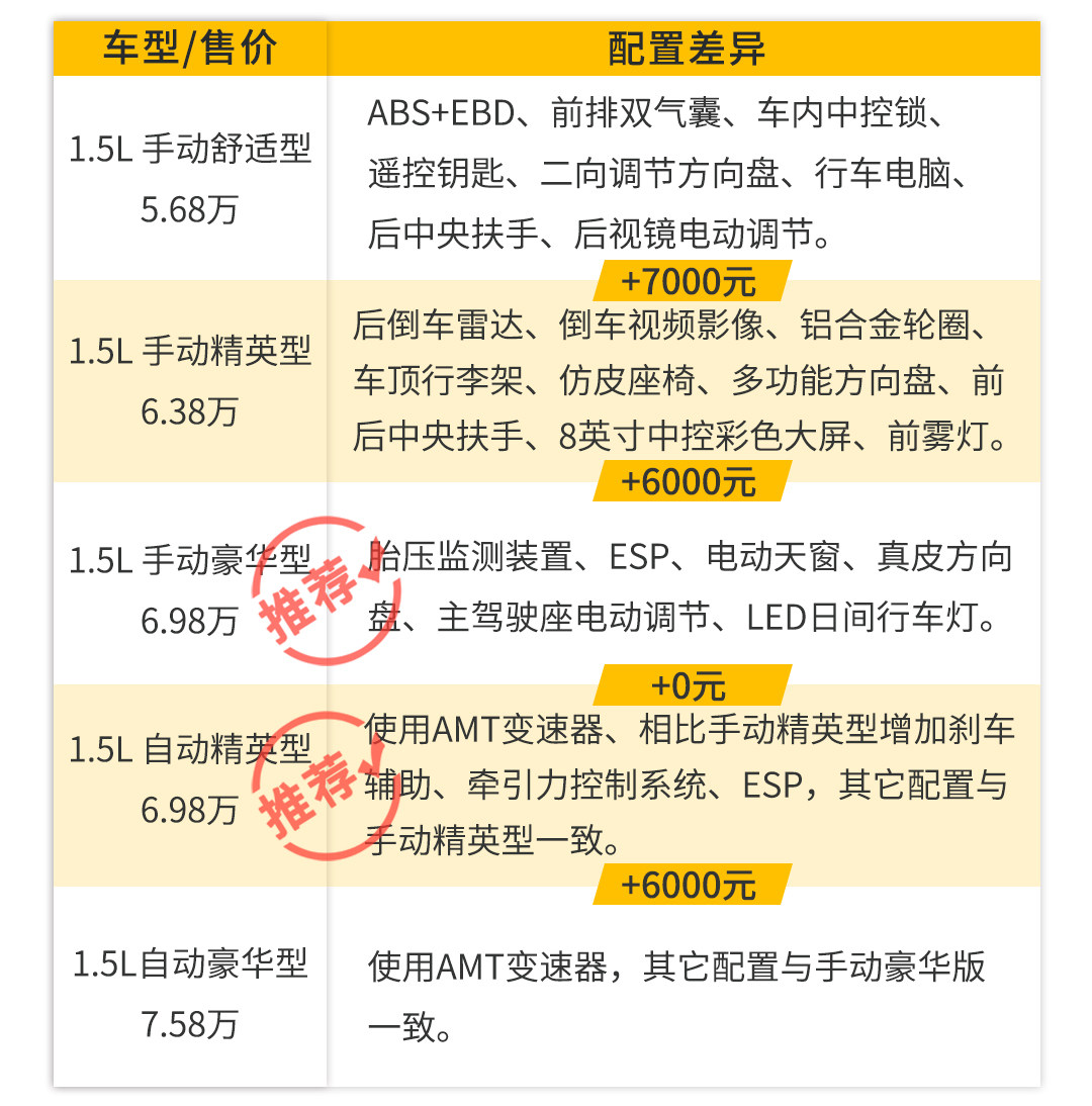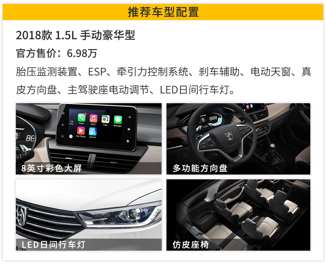 宝骏360共5个配置可选,其中性价比最高的版本为1.5L 手动豪华型,在手动精英型的基础上加多6千元便可拥有胎压监测、ESP、牵引力控制系统、刹车辅助、电动天窗、真皮方向盘、LED日间行车灯等比较实用的配置,日常使用中更加便利。假设想购买自动版本的话1.5L自动精英型也是不错的选择,价格与手动豪华版相同,在配置上拥有ESP、牵引力控制系统、刹车辅助等基础的安全配置,其它配置与手动精英版无异,也能够满足基本的家用需求。