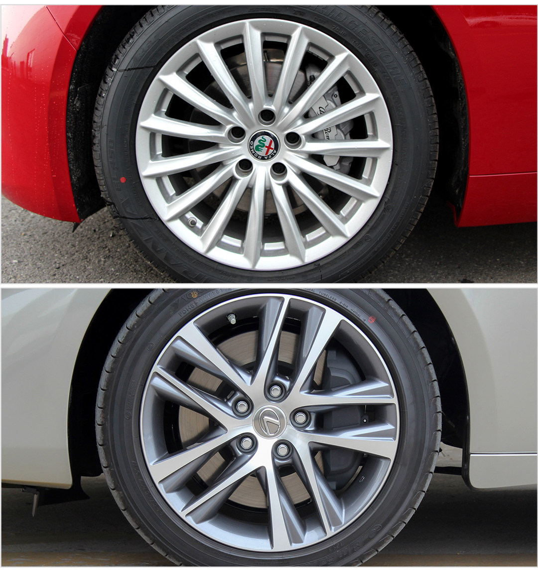 Giulia轮胎规格为225/50 R17,单色形状也是入门版采用的,次低配以上为18寸;而IS则是扁平比更小的225/45 R17,尺寸和形状都是全系一致的,值得点赞。