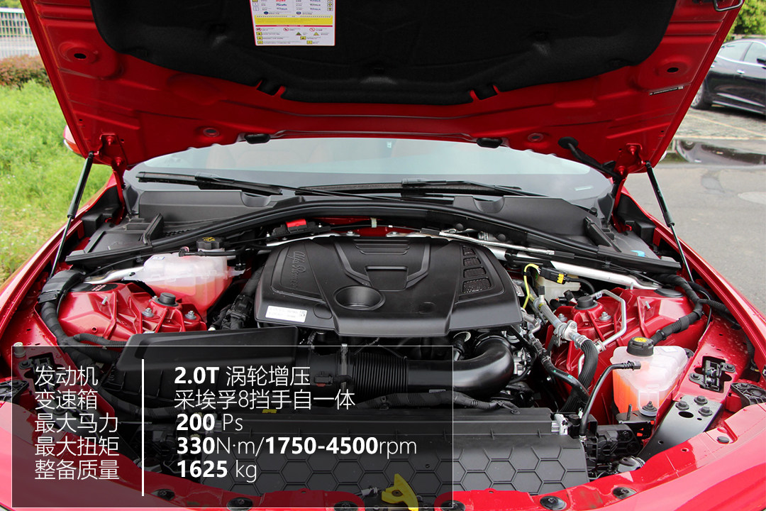 Giulia标配2.0T发动机,分高低功率调校,入门版车型搭载低功率发动机,最大马力200匹,峰值扭矩330N·m,匹配来自采埃孚的8AT变速箱。