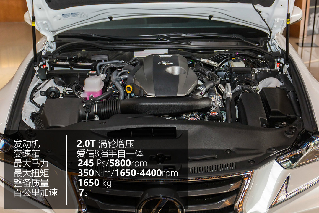IS则全系标配2.0T发动机,最大马力245匹,最大扭矩350N·m,相比之下更具有优势,匹配来自爱信的8AT变速箱。