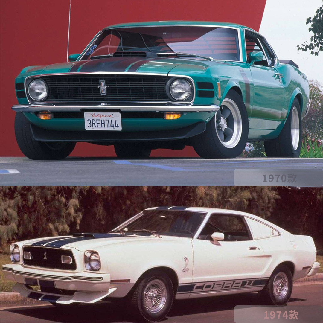 Mustang则是因为第一代已经足够经典,所以一直都只是改款到1974年进入第二代车型,福特提前预估到了石油危机和新环保法案对市场的影响,所以设计更加保守,且取消了V8,第二代Mustang的转变是成功的,因为它在销量上赢得了不错的成绩,1974-1978年总销量超过了110万台,但却预示着肌肉跑车的“大难”将要降临...