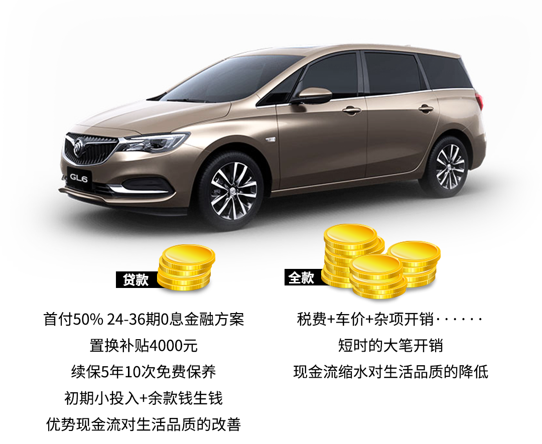 为了给家人带来更好的出行体验,GL6显然是一个更好的选择,而指导价14.49-16.69万的它,相比于自主MPV价格是高了一些,但并非遥不可及,这里教授就推荐大家一种方法来打破上述自主MPV和合资MPV的选择难问题,那就是通过贷款的方式来购买!目前别克正在开展“GL6五成首付,24-36期免息金融方案”,极大程度上降低了GL6的入手门槛。更好的消费理念,带来了更好的用车质感。一点点的投资,换来的是全家人体验指数的升级。