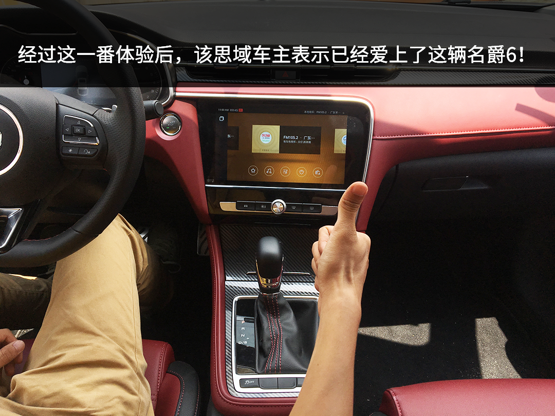 消费者都说颜值即正义,这位车主买思域的重要原因之一就是喜欢那动感的外观,但见到名爵6的实车时居然产生怦然心动的感觉!而且打开车门后发现内饰设计时尚,用料感觉很厚道,手感很好。
