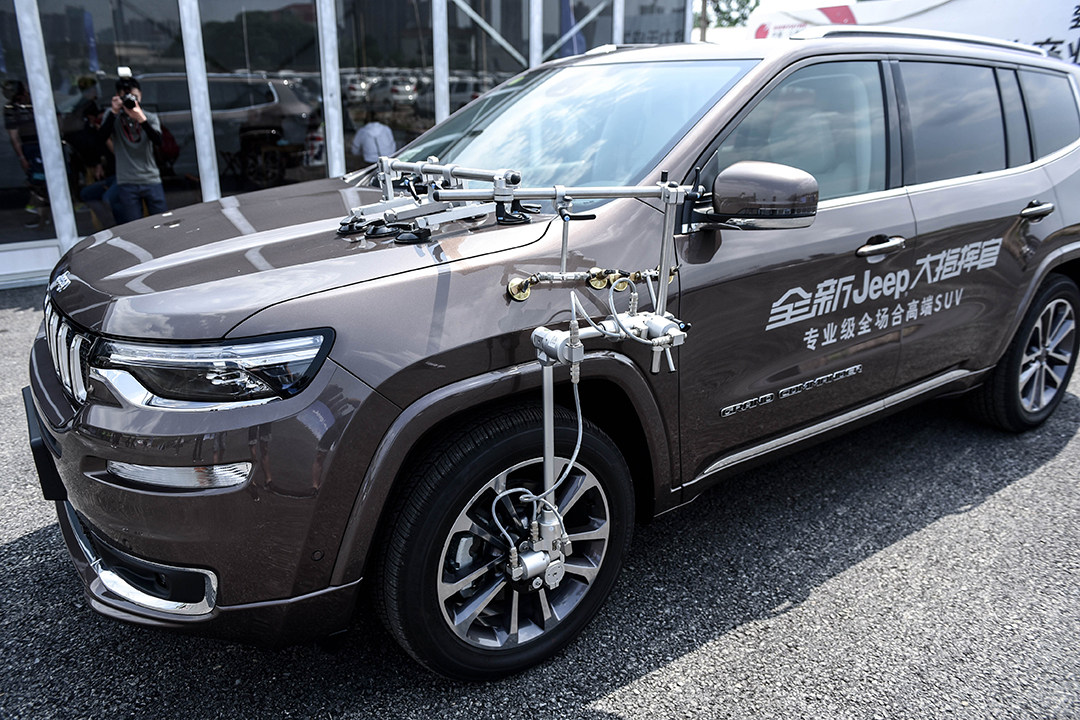 大指挥官在交叉轴测试中,当车轮空转时迅速进行锁止,而且不需要狠踩油门就能轻松通过。四驱能力相当不错。