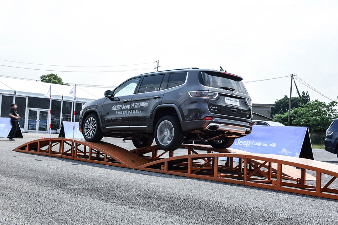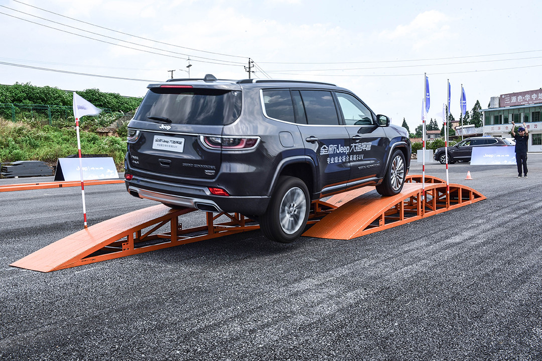整个测试过程中,大指挥官的表现都非常好,当检测到轻微打滑时,ESP系统就会非常快速的介入并进行高效的锁止,以达到快速脱困的效果。同时,和不少车型需要大力呼油门以激活ESP响应不一样,大指挥官只需要和平常驾驶一样轻踩油门,就能激活锁止,过程比较轻松,也不需要有特别的驾驶方式。相比之下,同场两款竞品中,一款需要多次尝试并大力踩油门才能通过障碍,一款甚至不能通过交叉轴的考验,四驱能力来说就比大指挥官要更逊色一些。而在一些野外非铺装道路上,大指挥官可以用有更好的通过性,同时也带来更好的行驶安全保障。