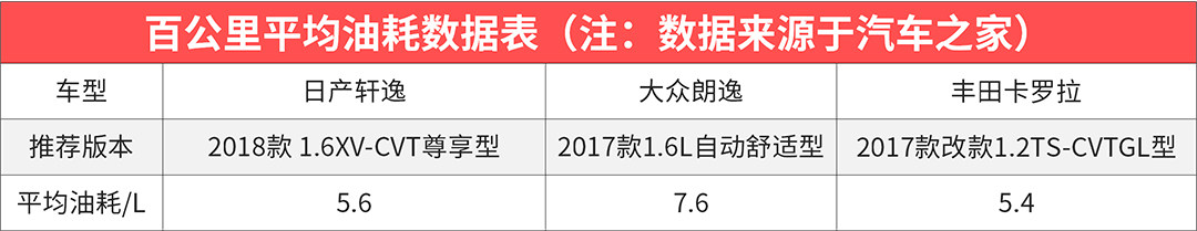 既然说到家用车,那油耗必然也是消费者买车的衡量因素之一,推荐的三款车在油耗上又有什么样的表现呢?
