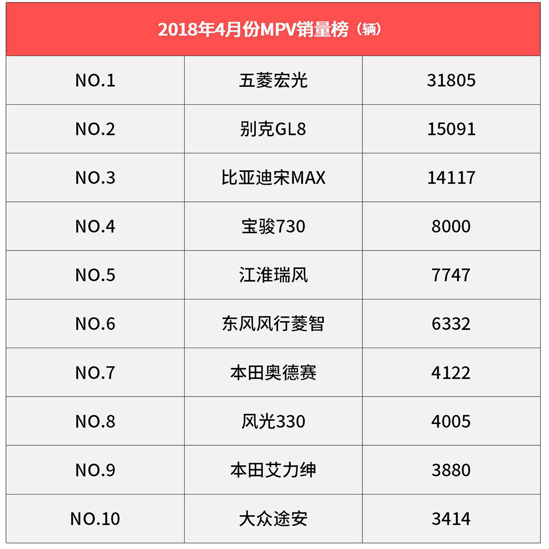 在某种程度上,MPV销量会比轿车有看点得多,五菱宏光家族依旧是最畅销的MPV车型,微面这种可以适应绝大多数个体工商户日常工作生活的小车从来不缺乏市场;但是在第二位的高销量车型上,亚军宝座让别克GL8夺得。