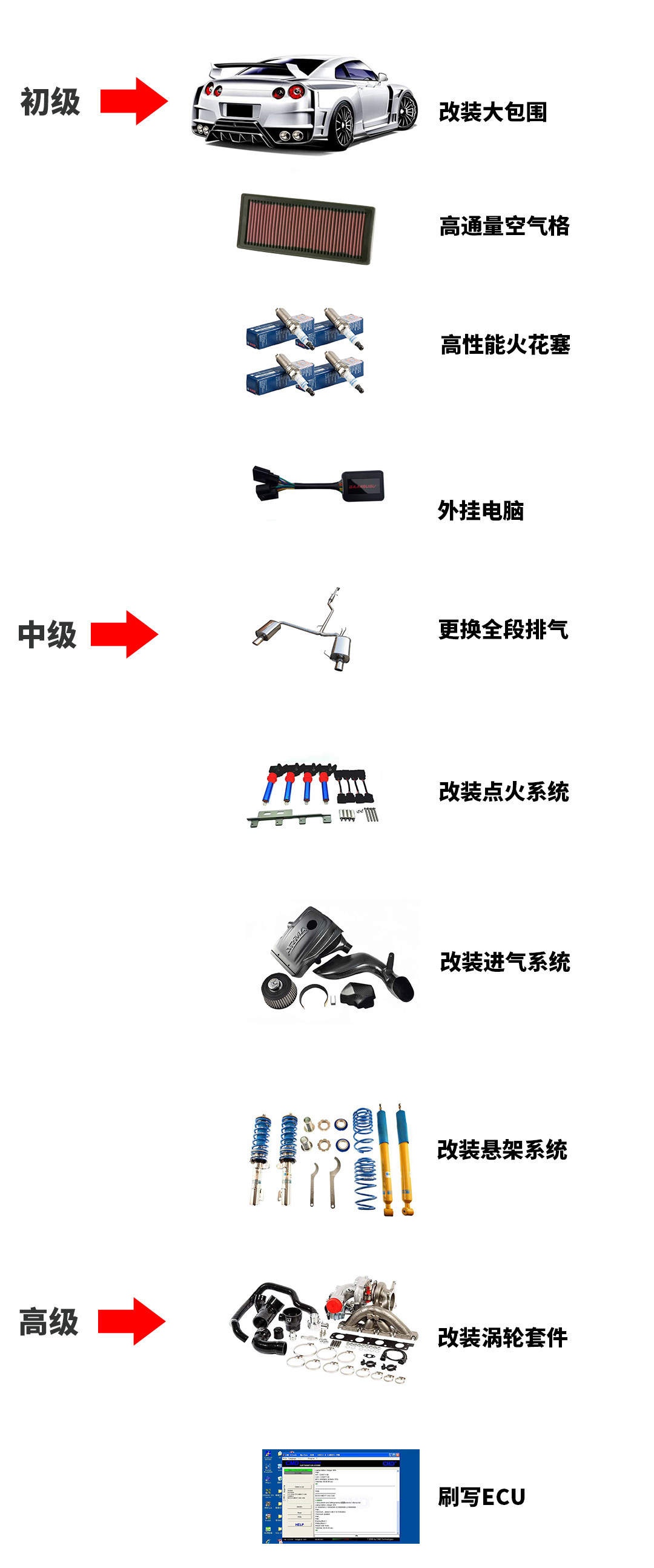 于是也有不少车主会萌生起改装的念头,但关于汽车这点事就必须说清楚,汽车改装也可以分为几个等级,最低级就是对车型外观进行改装、其次是简单的配置加装;车型悬架升级;最后才是车型动力的改装。值得一提的是,升级动力系统绝对是一件极其高深的学问,而且在改装价格方面并非每一位消费者都能够承受得起,也可以用“败家”来形容;但值得一提的是,在中国改装汽车的动力总成是不被允许的。