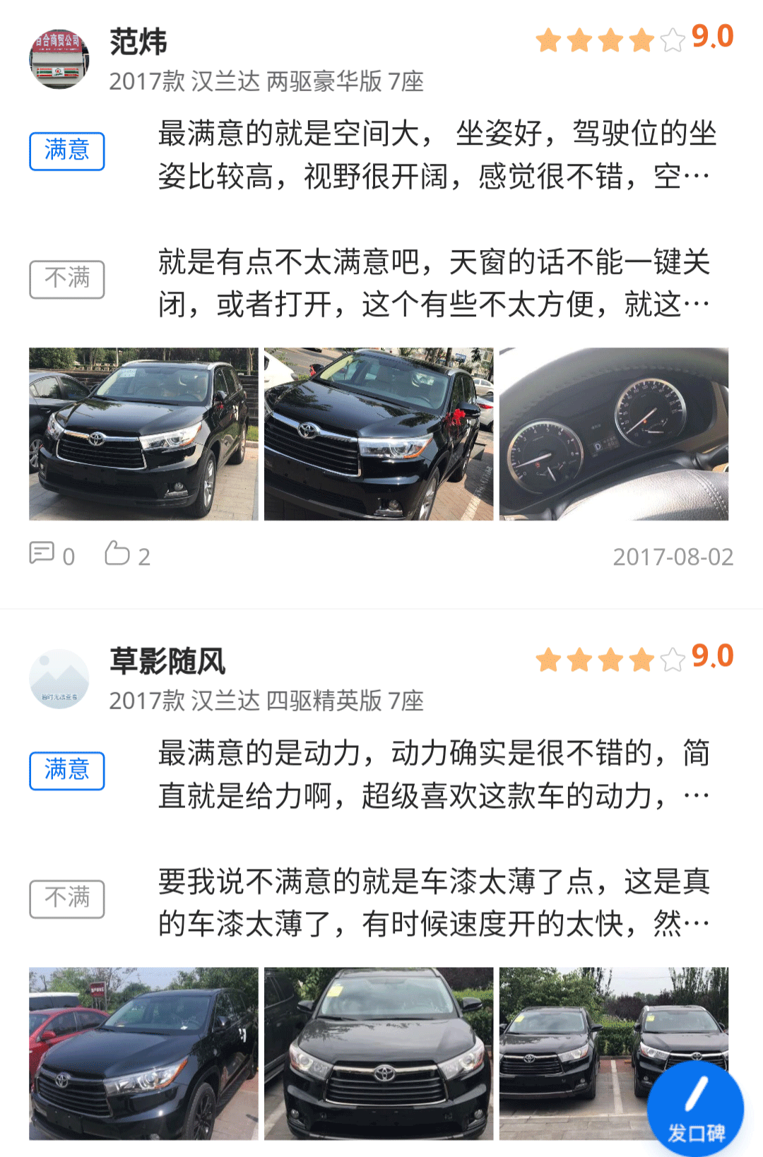 接下来我们就来看看已经拥有汉兰达的车主们对这款车有怎么样的评价!