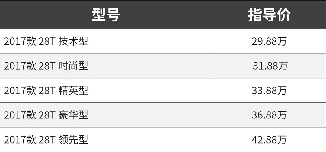 指导价29.88-42.88万