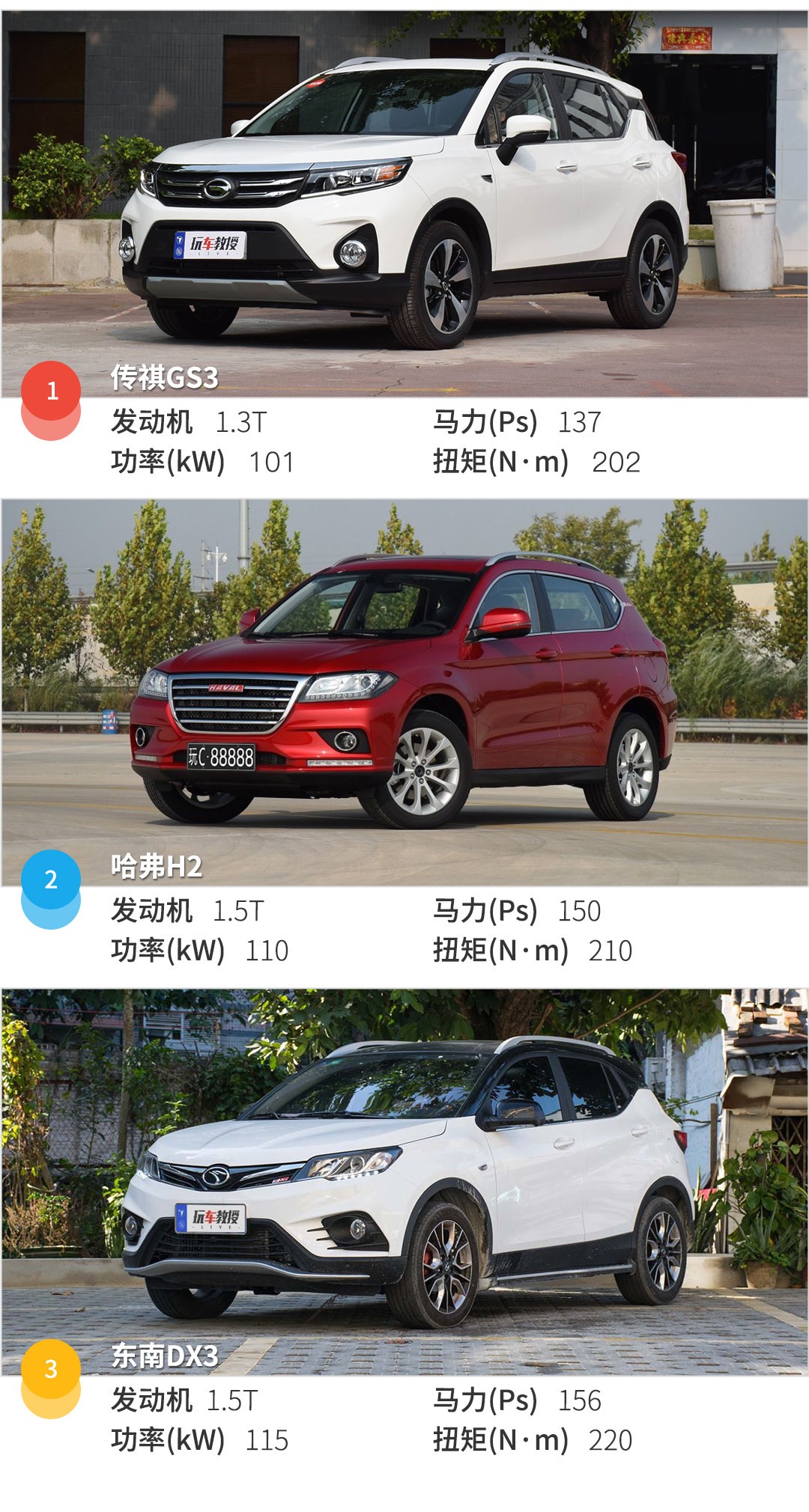 最近,有个网友问教授:”教授,12万买小型SUV,自主品牌传祺GS3、东南DX3、哈弗H2要怎么选呢?”教授觉得吧,三款车都有各自的亮点,选择起来还是比较容易的,今天,教授就来为大家分析分析这三款车的亮点。