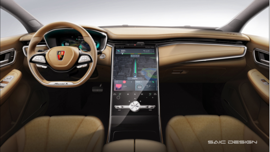 荣威MARVEL X采用了百万超跑惯用的内饰中控布局,纵向布置的大屏整体尺寸达到19.4英寸,超越了特斯拉17寸大屏,在量产车中无出其右,极致品位科技。中控大屏与实体按键相融合的设计形式,实现“虚实融合”,形成集成上汽荣威智能中控系统,带来“超越概念”的极致体验。同时,新车中控从中央扶手处腾跃而起,与IP形成完美对接。这种“腾跃式”的中控设计,使屏幕形成了悬浮效果,保证了整体空间的通透性。