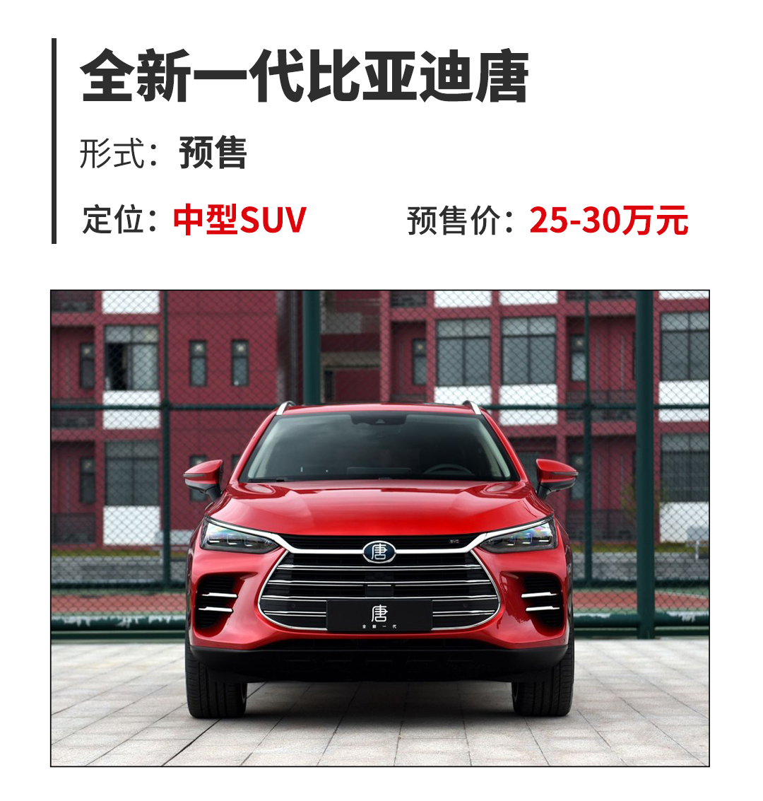 比亚迪唐的名号在新能源汽车领域可谓是赫赫有名,毕竟是一款百公里提速可以在5秒内的SUV,但是回归市场,唐的外观设计较为老气的事实还是让它的销量数据一直不太如意,终于,全新一代唐在前段时间公布了新样子、预售价之后,正式上市的时间也已经越来越近。