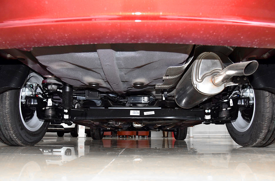 底盘方面,选用该价位车型常见的前麦弗逊式独立悬架+后扭力梁式非独立悬架。