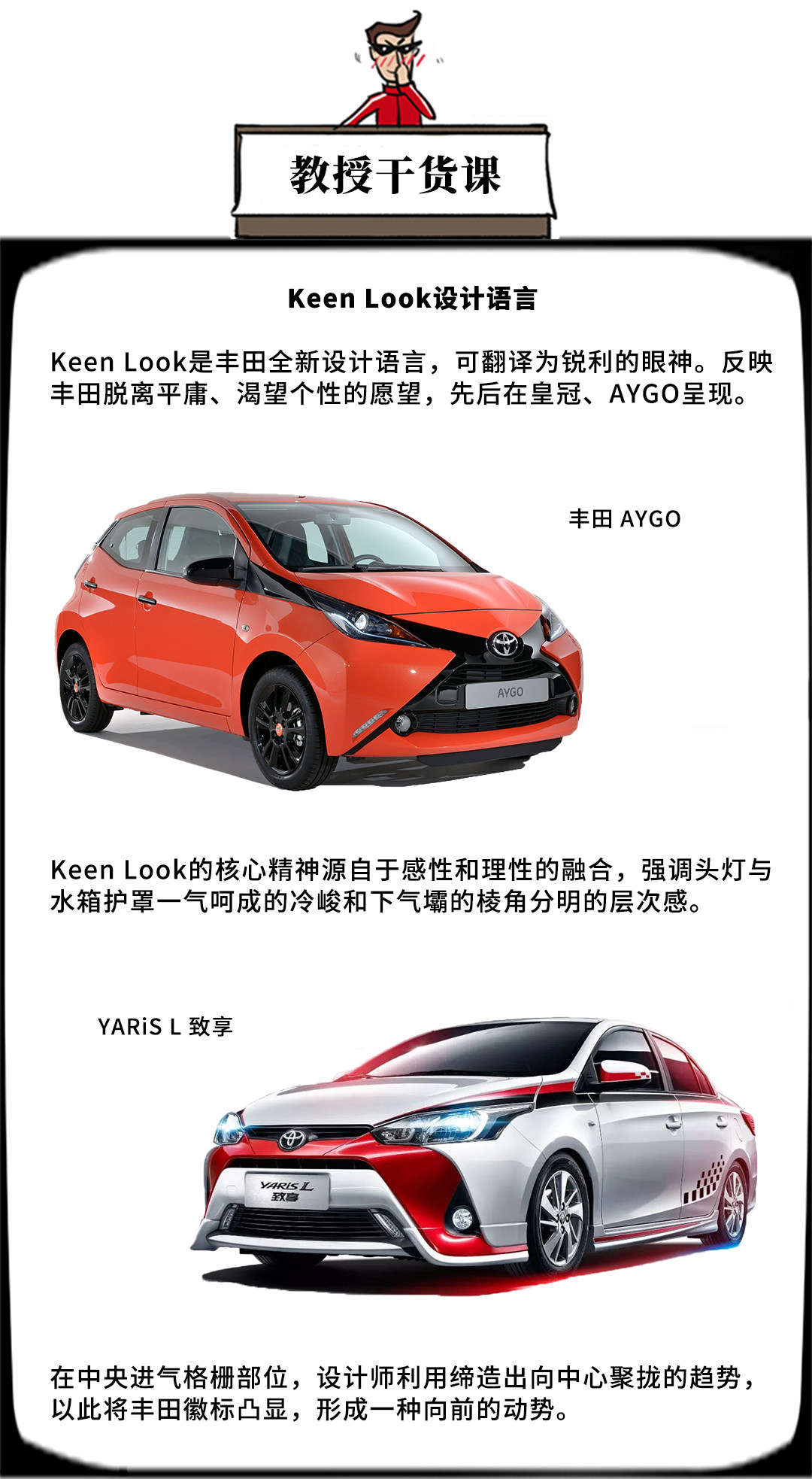 广汽丰田YARiS L 致炫采用Keen Look设计语言,特立独行的“墨西哥胡子”颇有异国风情,辅以LED日行灯带和动感前包围,表现出同价位车型罕见的精致度。