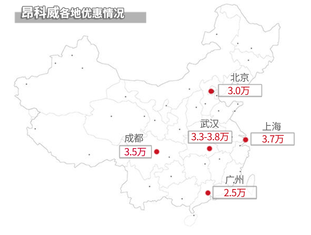 最后我们来看售价,教授认为别克的终端优惠一直很不错,据了解昂科威在全国有着3-4万左右的优惠: