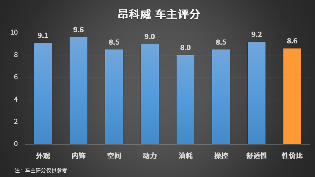 首先我们来看已经购买了昂科威的车主对它的评分如何: