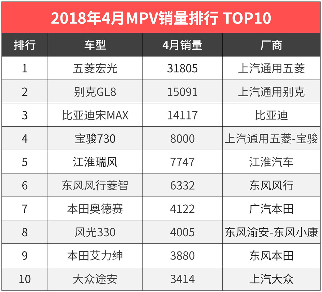 4月份的汽车销量排行名单早已出炉,除了最火爆的SUV和最活跃的轿车级别外,MPV的市场地位也是我们不能忽略的,虽然整体销量表现远不及另外两个级别抢眼,但其凭借更实用的空间性能,也让它在国内还不至于掉到小众的位置。