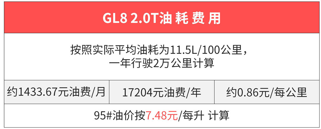 2.5L排量的为上一代在售的车型,其关注度是保持得不错的,同时也是GL8车系的销量贡献车型之一,而2.0T的则为最新一代车型;根据百位车主给出的实际平均油耗,2.0T车型的油耗要比2.5L车型稍高,并且需要添加95号以上汽油。