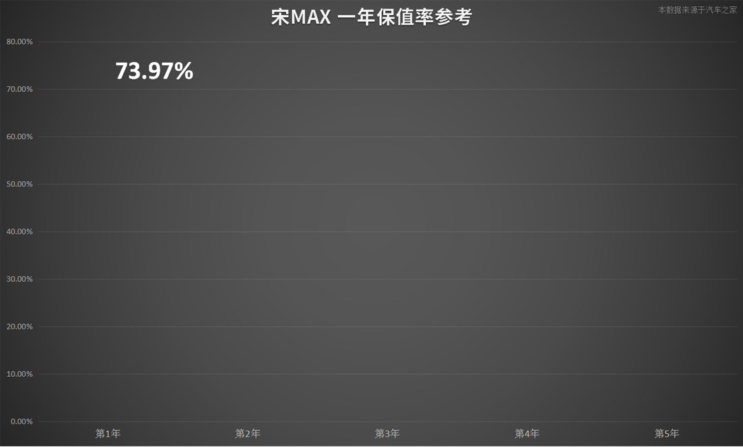 宋MAX由于上市时间不算长,其一年左右的保值率在73.97%,属于正常表现。