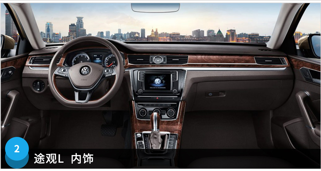 大众途观L的内饰相对来说更加中庸,很典型的大众“T”型风格,多采用平直的线条设计,好在用料做工都很不错,方向盘手感较硬,按键和旋钮的使用起来的感受还是非常不错的。
