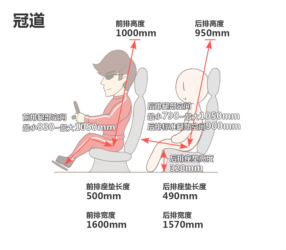 冠道的前排头部空间为一拳,后排头部空间为三指,腿部空间超过三拳,这样的空间表现很好地诠释了“豪华大五座”的概念,座椅的舒适度也很高,宽大厚实,坐垫填充物柔软,后排地台也是纯平设计,值得点赞。