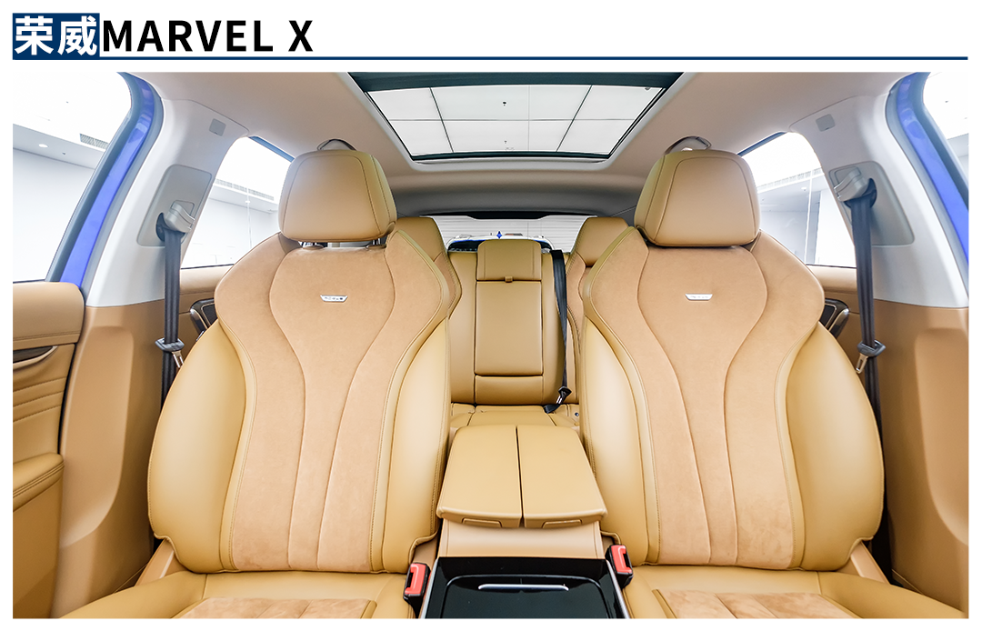 虽然这次活动能给教授体验实车的时间比较急促,但关于内饰方面,教授对MARVEL X还有两点表示挺满意的。第一方面是内饰用料方面,能摸到的地方几乎都是软的,且手触质感不赖。第二是乘坐舒适性方面,MARVEL X的座椅采用了Alcantara和小牛皮拼接而成,质感不赖,而且座椅设计较合理,能给人体带来不错的支撑性。后排地台更是全平的,能让乘客拥有更舒展的乘坐姿势。