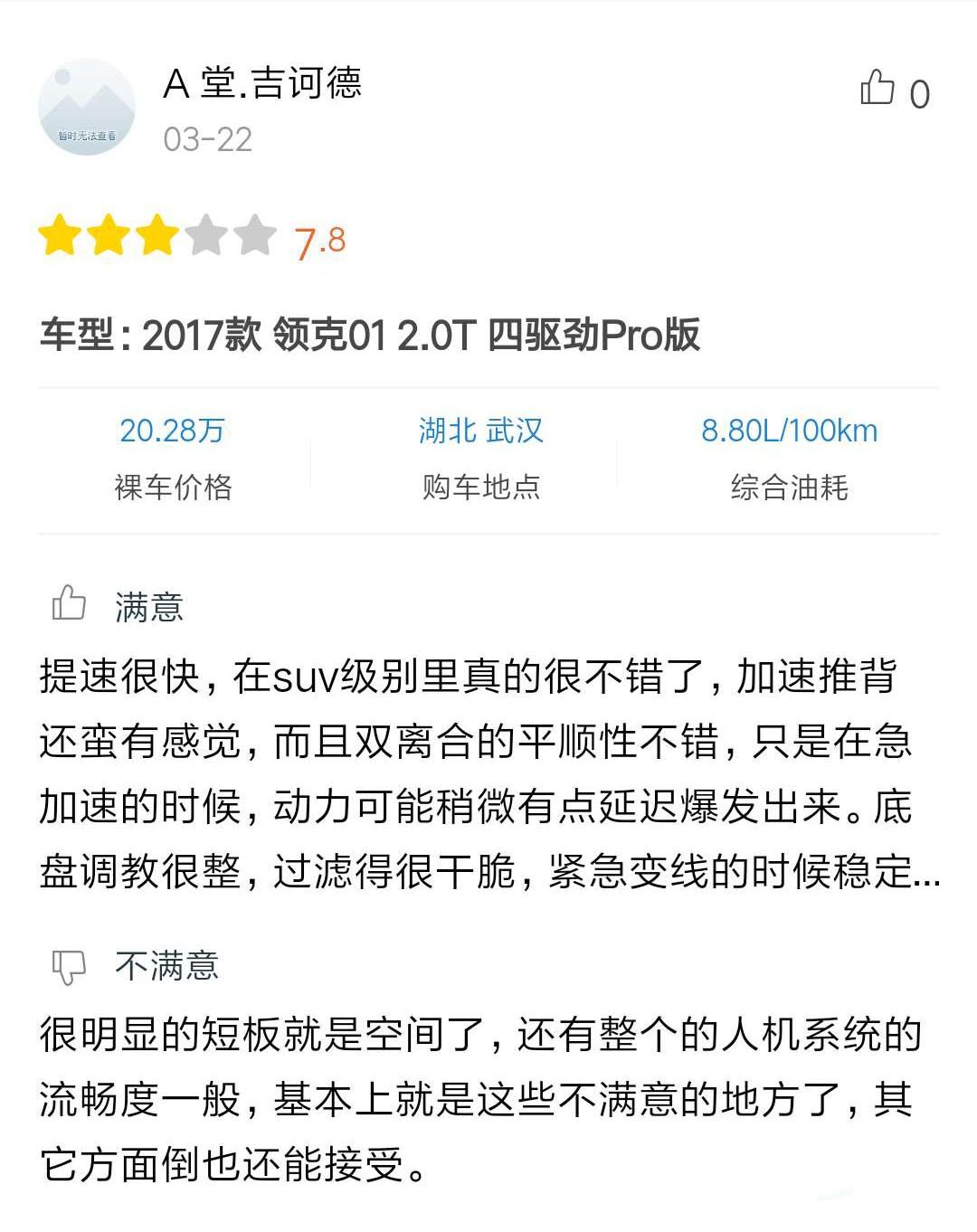 每个人选择车的原因都不相同,外观、内饰、空间、动力等等方面都有需要考虑的原因,经过比较之后才能选出最适合自己的车。国产车在进步,群众的眼睛是雪亮的,VV7和领克01在口碑上挑不出太大的短板。至于你是选择帅气的国产车还是中规中矩的合资车?在下方送上你的宝贵意见吧。
