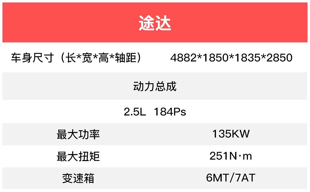 许多人比较担心的是全系2.5L自然吸气发动机能否满足途达这么大车身的动力需求,虽然低段的速度不会有问题,但高速段略显疲软,想要超车就要深踩一点油门了。