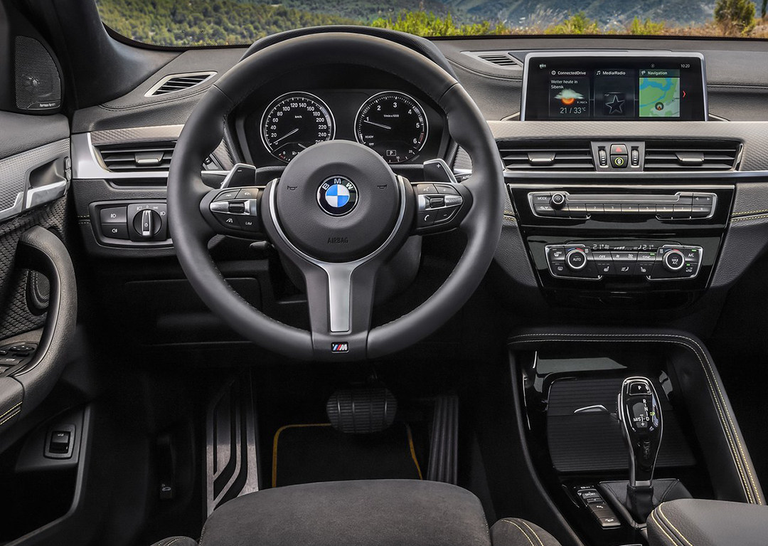 X2内饰上依旧是熟悉的宝马家族式风格设计。新车采用银色装饰面板搭配黑色为主色调的内饰风格,并采用银色装饰条进行点缀。此外,新车还配备有M风格的运动方向盘以及全新设计的换挡杆。教授认为这也是X2运动感的一种体现。
