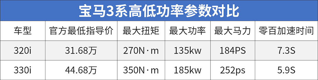 宝马3系高低功车型指导销售价相差也是10万左右,与2.0T发动机匹配都是来自日本的采埃孚8AT变速箱。低功版车型的零百成绩和S60L低功版是相同的,均为7.3秒。当然了,发动机和变速箱的配合也是相当的到位,加速时发动机爆发力十足,后期的动力输出也是稳定有加。