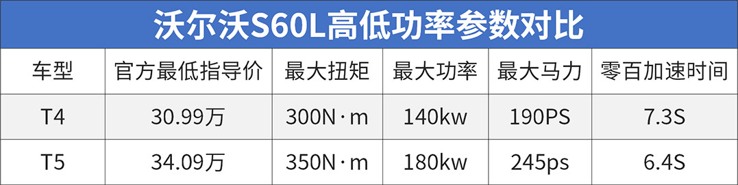 从表中我们可以见到S60L高低功率的售价相差并不是很大,但动力提升还是比较明显的,低功2.0T发动机匹配的是6AT变速箱,百公里加速7.3秒。在日常驾驶过程中低功版油门还是比较跟脚的,换挡速度和平顺性都表现得不错。