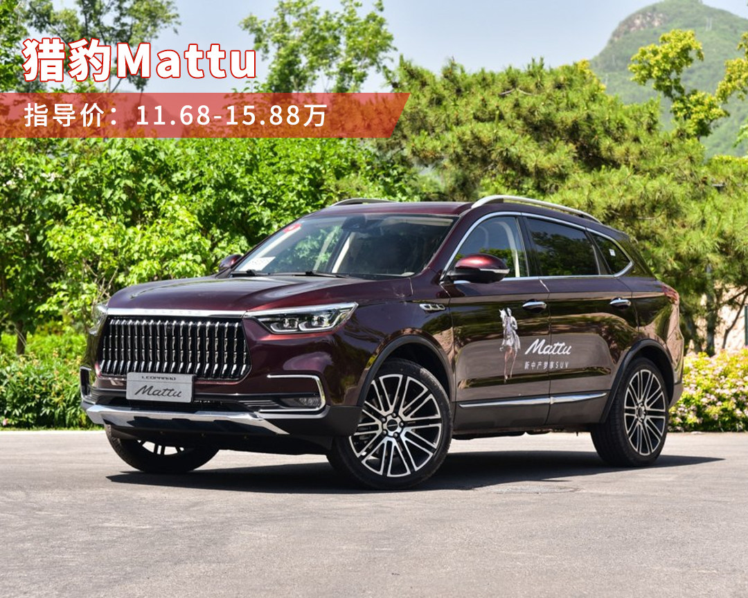 Mattu定位比猎豹CS10更高的紧凑型SUV,尺寸方面达到4696*1906*1709mm,轴距为2700mm,处于该价位SUV的中上水平。它整体设计理念在于豪华,造型动感同时富有质感,内饰设计更是借鉴了奔驰的贯穿式双屏仪表盘,效果相当出色,当然也可以它缺乏原创度。配置方面除了液晶仪表盘,还带有全景天窗、倒车影像、车道偏离预警系统、并线辅助系统以及360°环车影像系统。动力方面则是采用了宝马技术支持的王子系列1.6TGDI发动机,最大功率达到了200马力,峰值扭矩达到了270牛米,已经不亚于某些1.8T以及2.0T发动机,匹配的是6速手动或者6速双离合变速箱。