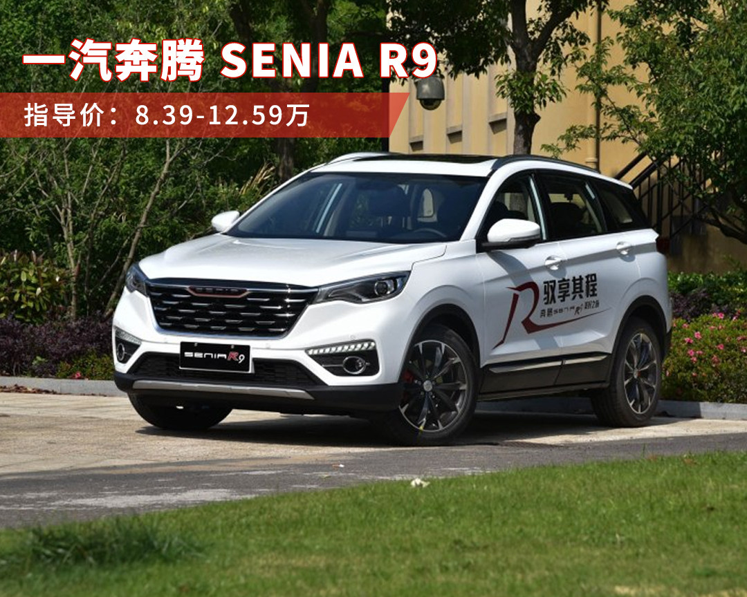 SENIA R9是奔腾品牌旗下定位最高的SUV产品,4505*1835*1695mm的车身以及2700mm的轴距让它显得相当威猛。此外外观它也使用了多种潮流元素,将精致设计带到更多细节之中,诸如富有个性的进气格栅、犀利的LED大灯、悬浮式中控屏幕以及悬浮式车顶设计等等。动力方面前期推出1.2T两款发动机,最大功率分别143马力匹配5速手动挡以及7速双离合变速箱,后续将推出1.5T版本。配置方面则是做到这个价位的较高水准,诸如电子手刹、自动驻车、自动空调、无钥匙进入系统。