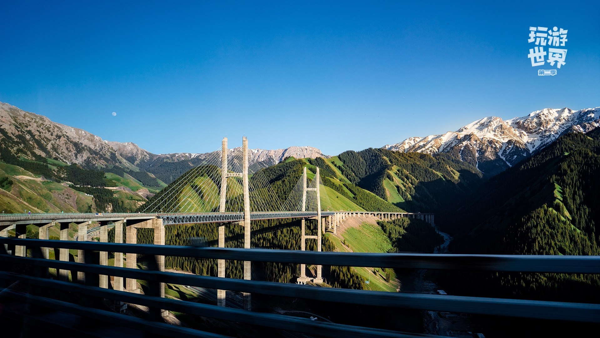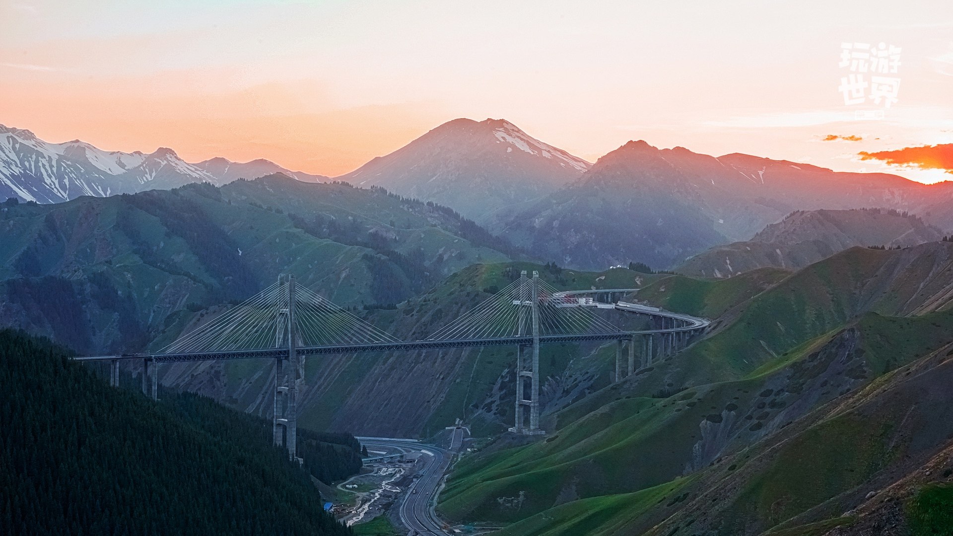 ▲以落日为背景的果子沟大桥真的梦幻般惊艳!