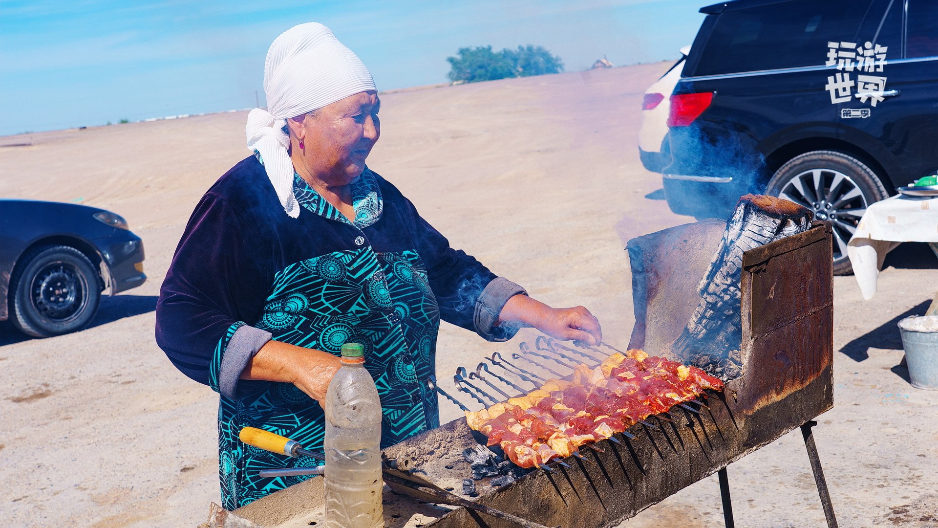 又比如,在路上我们还会看到不少的人文景象,让我们忍不住驻足交谈,虽然语言可能不通,但心灵的感应不分国界。可能是在半路的小餐馆遇上烤羊肉串的大娘,可能是在休息区遇到同样在狂奔的旅人,可能是好奇豪车队或中国牌的异国路人甲乙丙丁,等等。