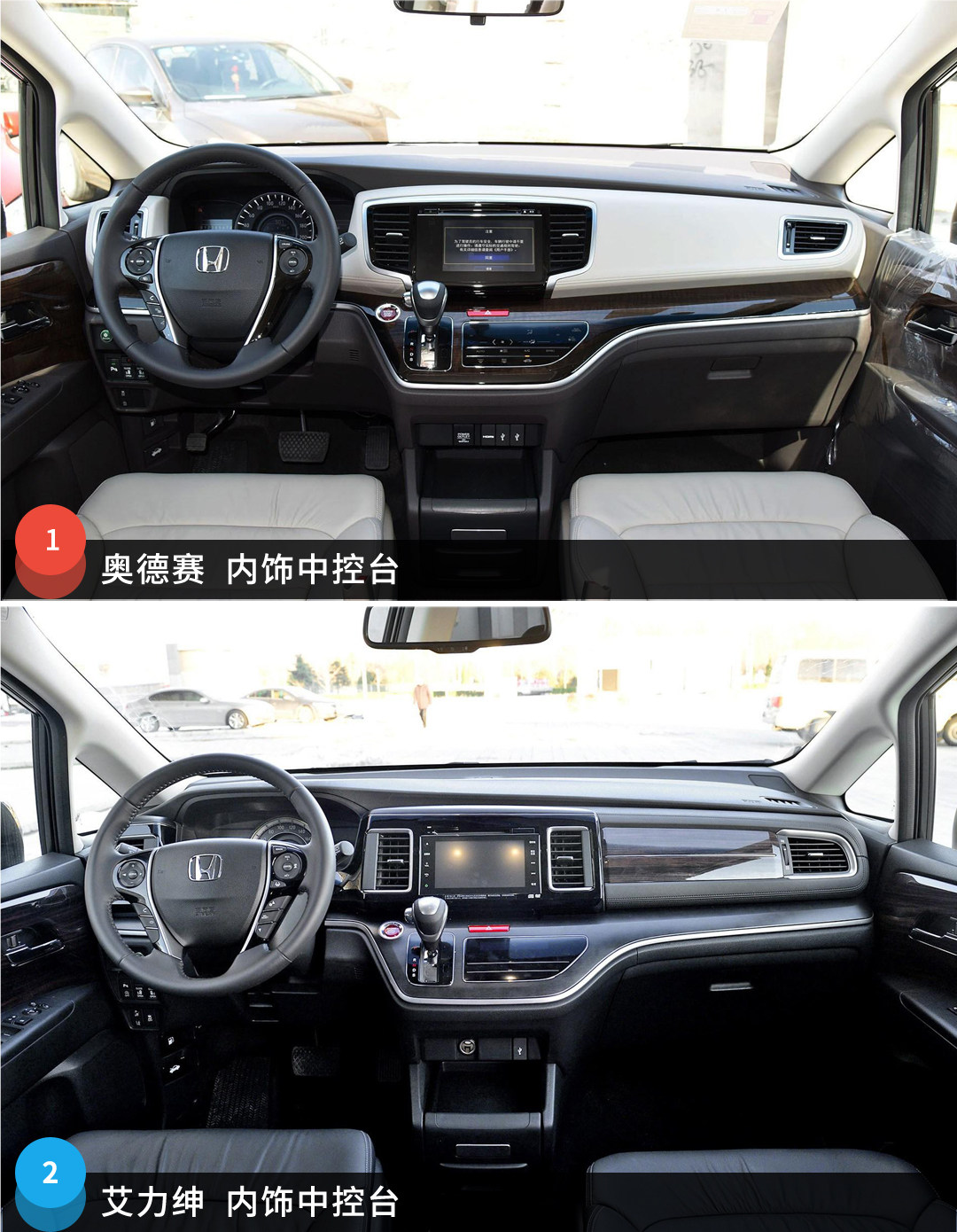 两款虽然都采用了典型的本田家族设计,但在风格上还是存在着明显的差异性:艾力绅整车的线条平直有力,而且采用了更多更粗的镀铬饰条加以点缀,灯具的尺寸面积很大,并且LED的点亮效果很好;而奥德赛的庄重仪式氛围则没艾力绅强,整体更偏简洁运动风格。