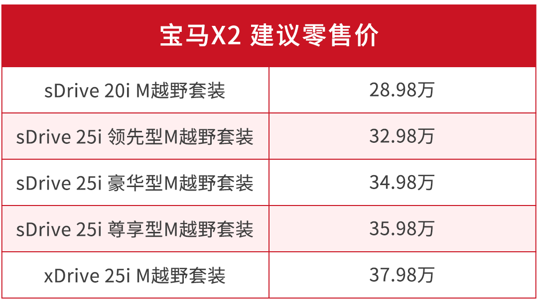 6月25日晚,宝马全新紧凑型SUV——宝马X2正式上市,售28.98-37.98万元,稍稍比X1贵一些。新车基于UKL平台打造,整体风格偏向年轻运动化,未来将与奔驰GLA争个你死我活。