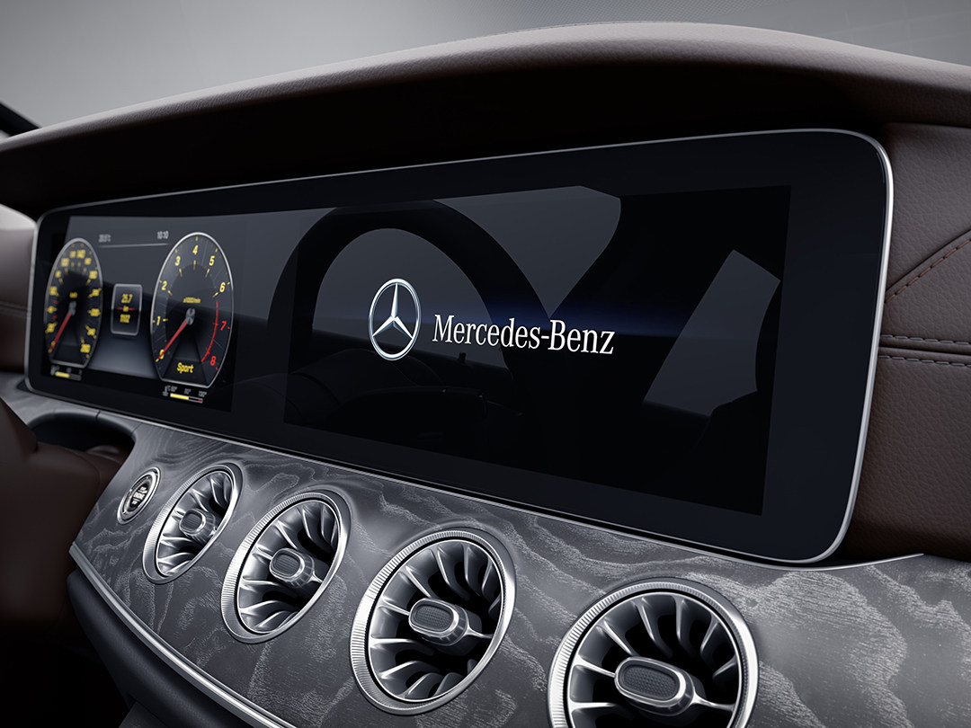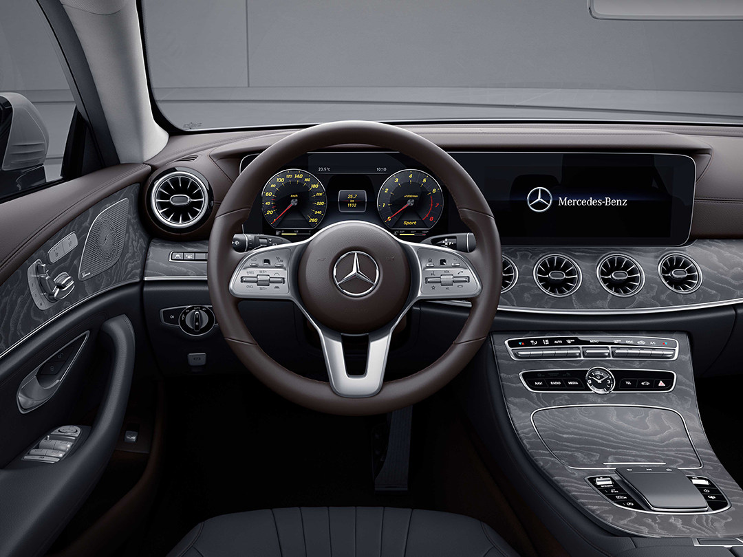 车厢内饰方面,中控台造型与全新奔驰E级保持一致的款式,但空调出风口更换为最新的涡轮扇叶状,配合大量木纹饰板的使用,新车内饰更突显贵气。车厢配色则提供棕色+米白色、黑色+米白色或棕色+黑色等搭配,新一代CLS车型更加追求雍容尔雅等贵族气质。此外,新车的方向盘并没有采用全新奔驰E级上面的平底式方向盘。总体而言,车厢内饰在豪华感营造部分,依旧是不可超越的同级标杆。