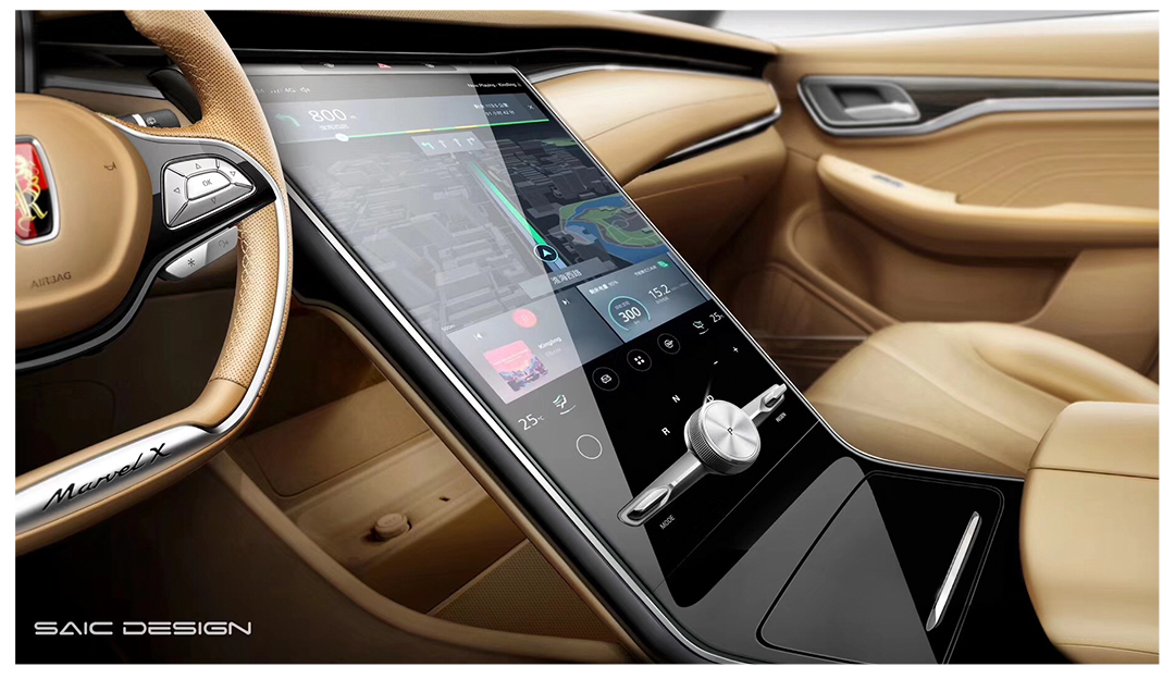 虽然这次深港澳车展,一如既往地没开放荣威MARVEL X的内饰给大家参观。但是教授之前看过荣威MARVEL X的内饰着实令人感到惊艳。一体环抱式的内饰布局和层次感十足的中控台展现了简约的时尚感。T型的中控台布局有着19.4英寸集成智能中控系统,它集成了大尺寸的虚拟屏幕与实体按键,超越了特斯拉17寸大屏。总的来说,它的内饰可谓科技感十足。