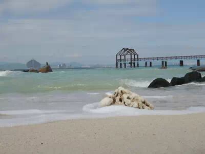 驱车30分钟左右,我们就来到了通往蜈支洲岛的码头。一下车,马上就听到海浪的声音,闻到清新的海洋味道,温润的海风迎面吹来,虽然是冬天,但是一点也不冷。等了5分钟左右,接我们的船就缓缓的靠岸了。由于早上下了点小雨,这时候天色还有点灰蒙蒙的,但是往下看,中午的时候就艳阳高照,阳光洒满了沙滩。