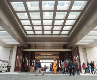 可惜照片看上去不够壮观,这个会议室非常宏伟,而这里安排的会议、活动极多,我们参观的时候是少有的空余时间。