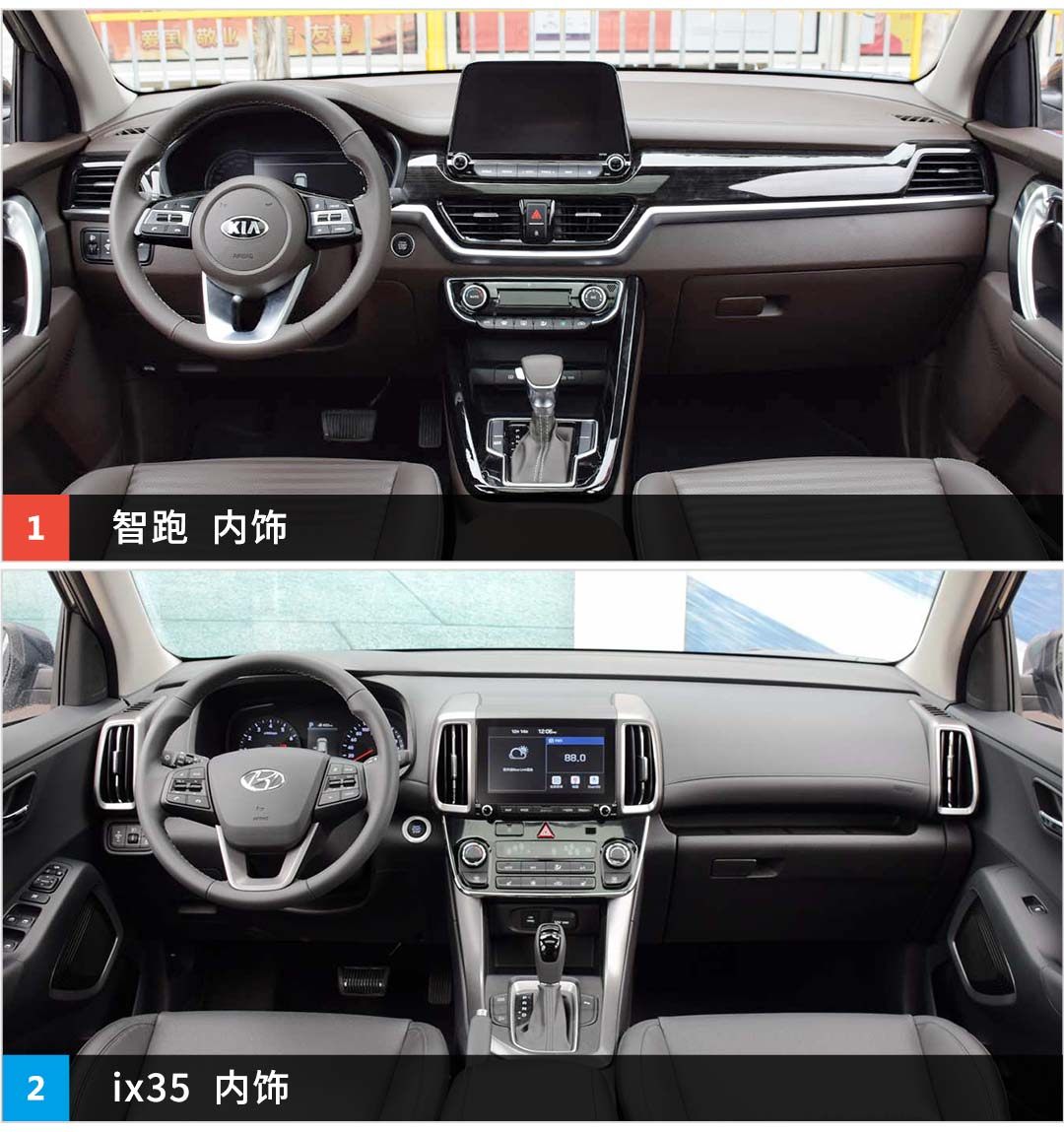 智跑新车内饰有较大的改变,更加符合现在消费者的审美,整体造型时尚运动,中控台层次分明,使用当下时兴的悬浮式中控屏。ix35内饰设计简单明了,各个功能区布局清晰,材质用料中规中矩,中控屏使用效果一般,还是与自主品牌的相距甚远。