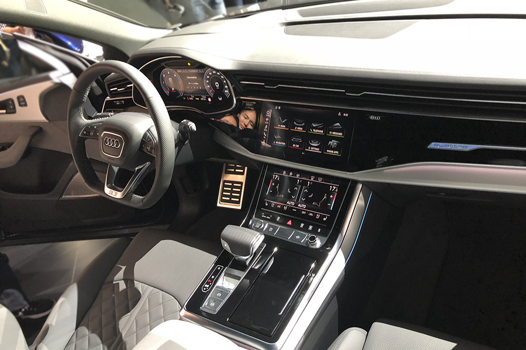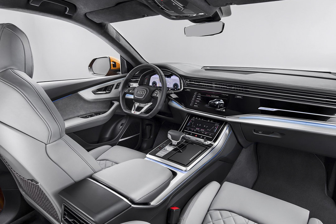 我们可以看到奥迪Q8的内饰与A8设计风格相似。上方10.1英寸显示屏、下方的8.6英寸显示器、12.3英寸的液晶仪表盘、带有整合铬条的连续通风口和豪华铝镶嵌装饰条……奥迪Q8的内饰简约却不简单。奥迪Q8标配升级版MMI导航系统,而奥迪connect互联科技提供的在线服务还为导航过程增加了预测性功能。进入到奥迪Q8车内,就像是开始了一场无与伦比的旅途。