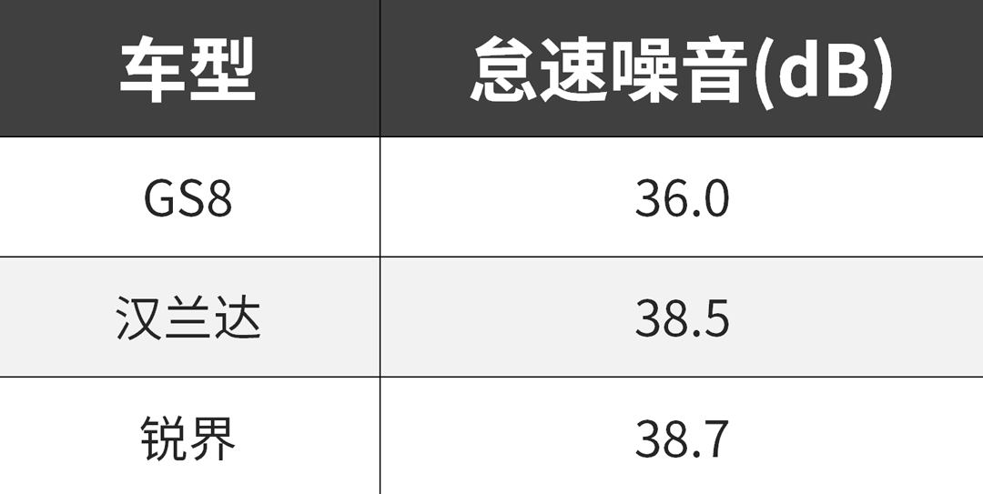 上图能看到,GS8在怠速下的NVH控制得比另外两款竞品车型要好不少。实际驾驶时,GS8对各种噪音的隔绝都做得较为到位,这得益于GS8全车使用了多达16处的空腔阻隔材料。